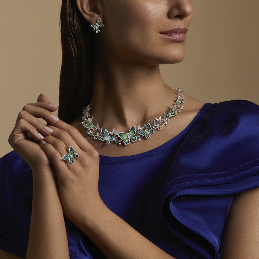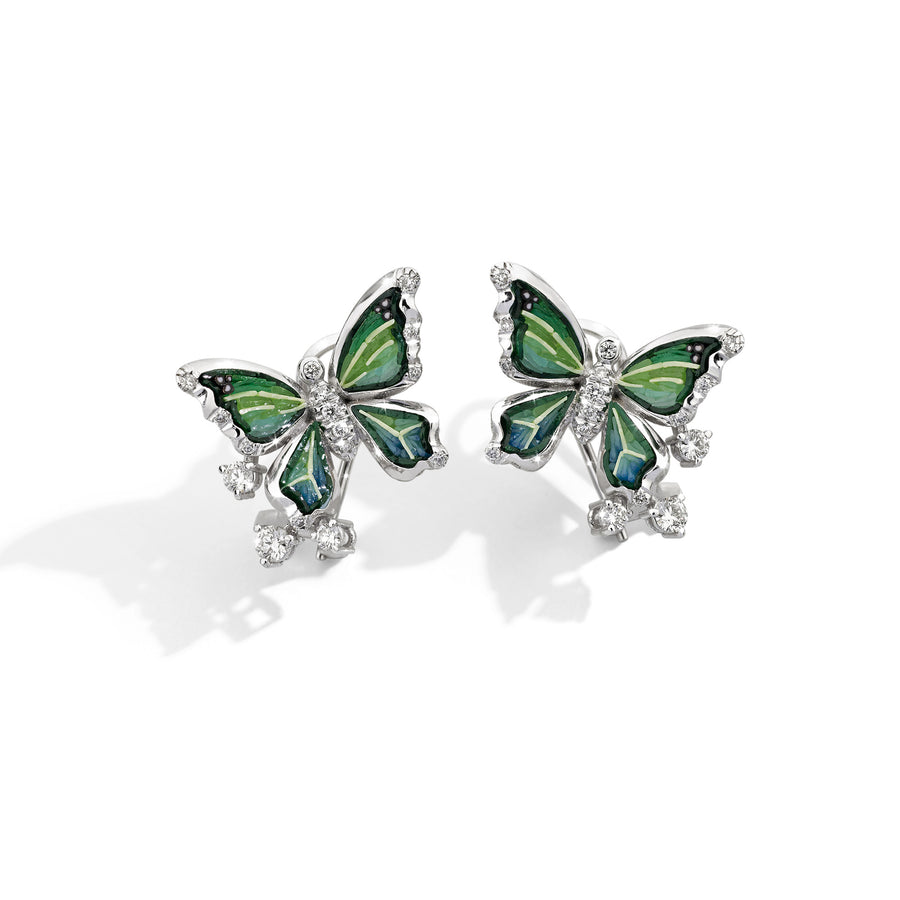 Experience a symphony of elegance with our Butterfly Romance Turquoise lobe earrings. Inspired by delicate butterfly wings, they blend the opulence of white gold, shimmering diamonds and micromosaic. Like fluttering whispers of grace, these exquisite earrings adorn your lobes, captivating hearts with their ethereal beauty.