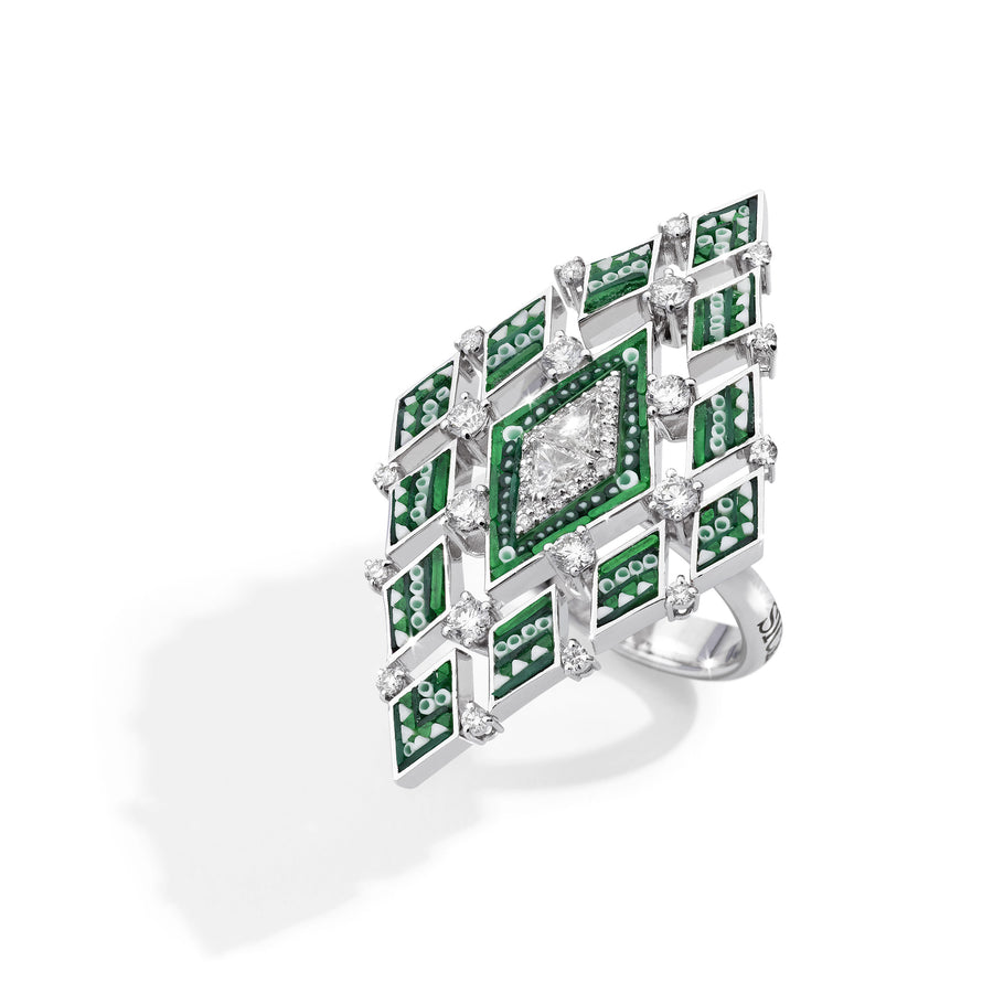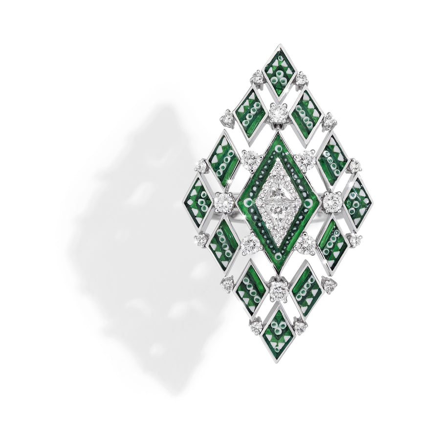 White gold, White diamonds, EmeraldsWithin the cart's page, feel free to specify your desired ring size in the notes section.