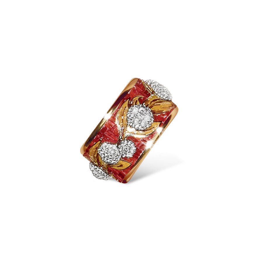 Micromosaic ring in yellow gold and diamonds. Designed by Roger Thomas.