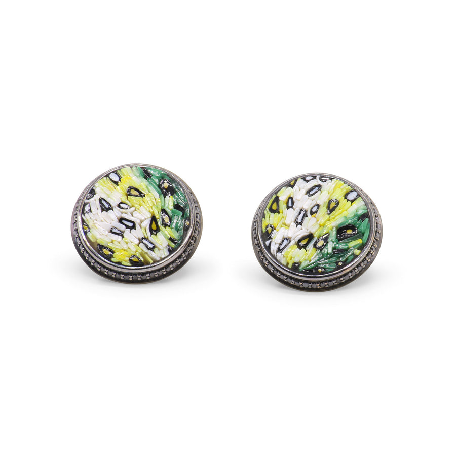 Micromosaic earrings in yellow gold and black diamonds.