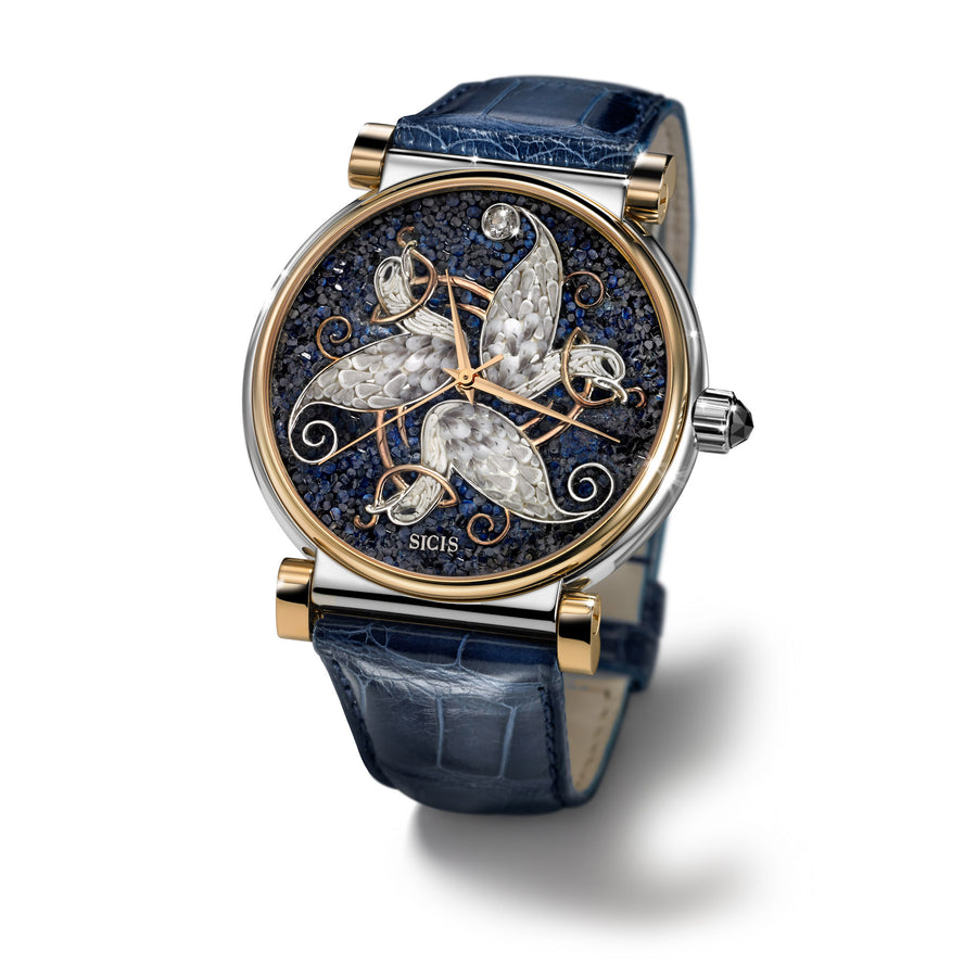 Sicis Jewels jewellery and watches are made by our mosaic masters who, with care and patience, apply the tiny vitreous tesserae, one after the other. The tesserae are entirely spun and cut by hand, and their colours are subject to climatic and environmental variations during production.